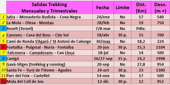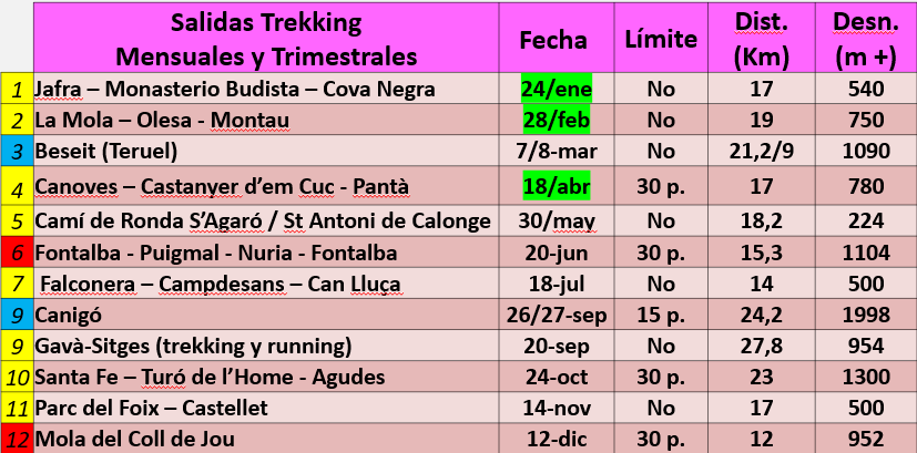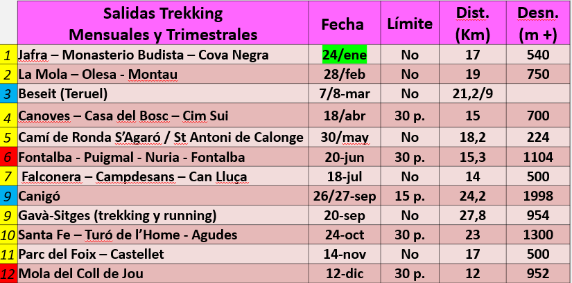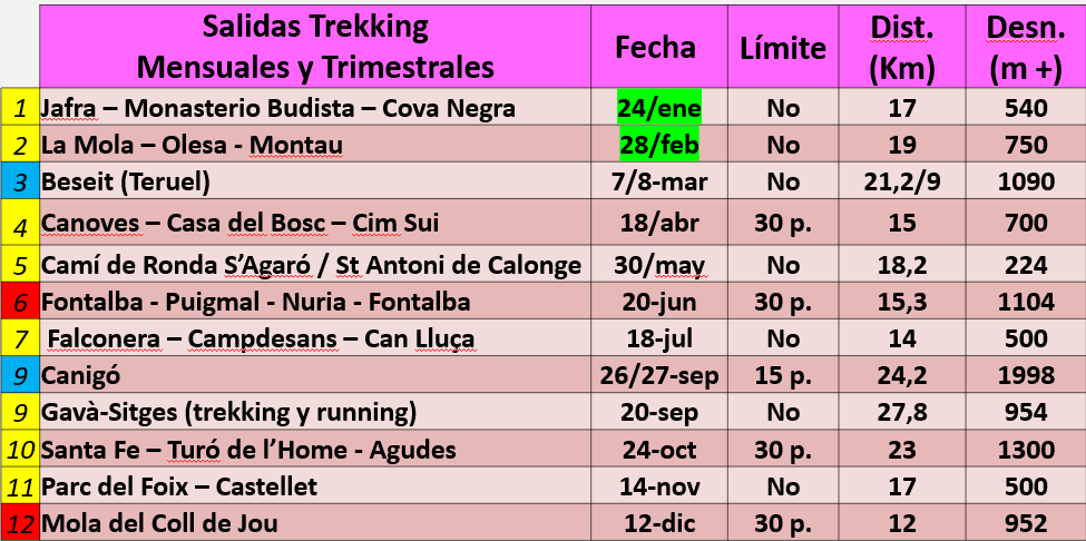 Calendari d’activitats trekking per l’any 2026